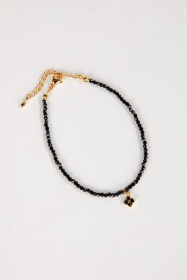 Rachel Black Beaded Quatrefoil Charm Bracelet